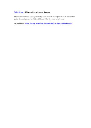 CXO Hiring - Alliance Recruitment Agency PowerPoint PPT Presentation