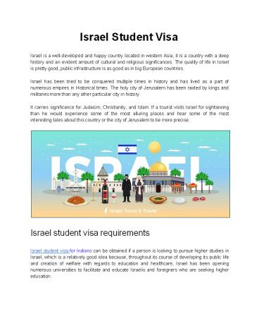 cannot participate in employment activities. - All the Israel visa requirements must be met by