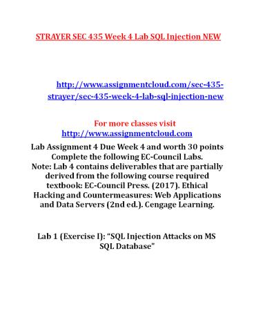 SEC 435 Week 4 Lab SQL Injection NEW PowerPoint PPT Presentation