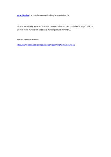 Irvine Plumber | 24 Hour Emergency Plumbing Services Irvine, CA PowerPoint PPT Presentation