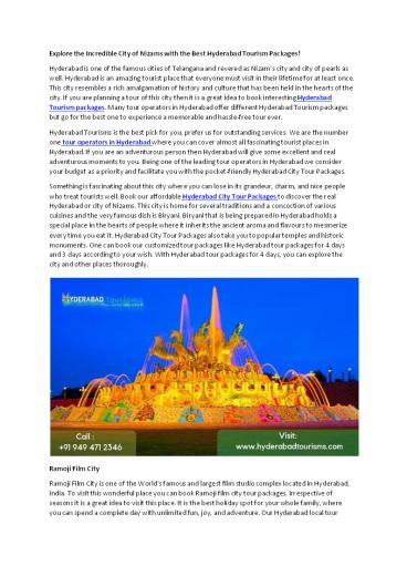 packages. Many tour operators in Hyderabad offer