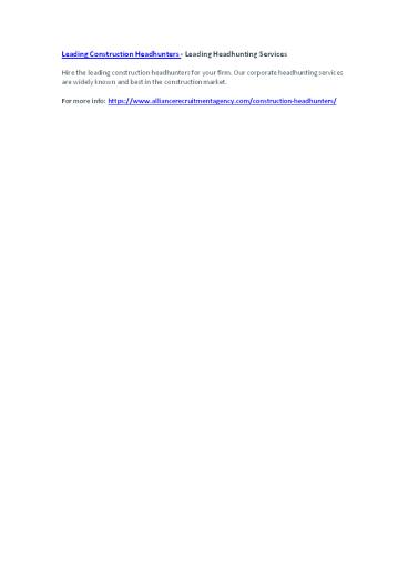 Leading Construction Headhunters - Leading Headhunting Services PowerPoint PPT Presentation