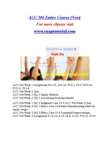 Title: ACC 306 Extraordinary Success |snaptutorial.com