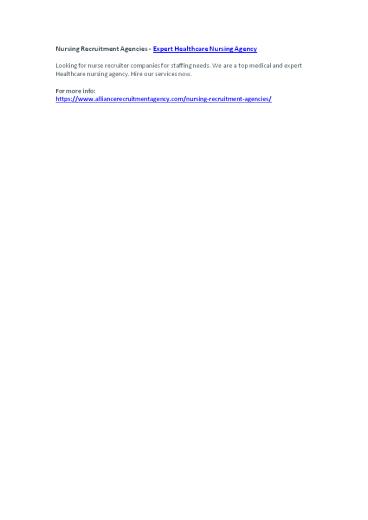 Nursing Recruitment Agencies - Expert Healthcare Nursing Agency PowerPoint PPT Presentation