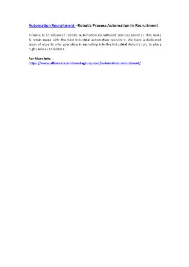 Title: Automation Recruitment - Robotic Process Automation In Recruitment