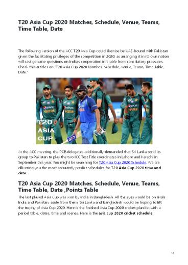 articles on "T20 Asia Cup 2020 Matches, Schedule,