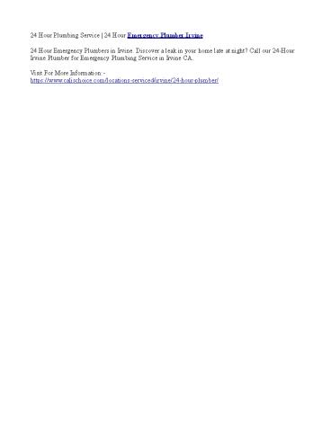 24 Hour Plumbing Service | 24 Hour Emergency Plumber Irvine PowerPoint PPT Presentation