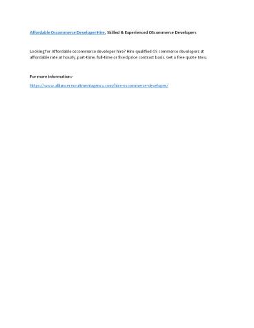 Affordable Oscommerce Developer Hire, Skilled & Experienced OScommerce Developers PowerPoint PPT Presentation