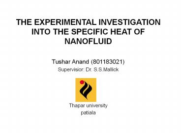 1THE EXPERIMENTAL INVESTIGATION INTO THE SPECIFIC