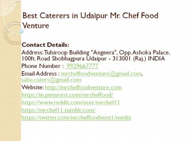 Best Caterers in Udaipur Mr. Chef Food Venture PowerPoint PPT Presentation