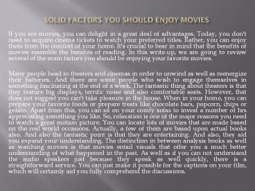 Solid Factors You Should Enjoy Movies PowerPoint PPT Presentation