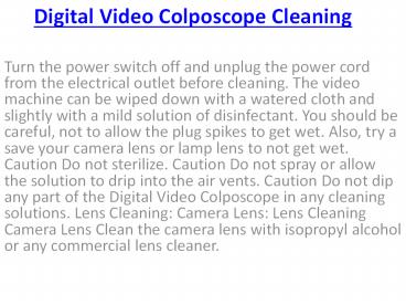 Digital Video Colposcope Cleaning
