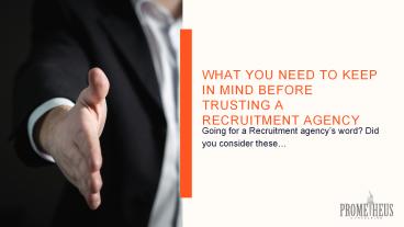 Can you trust a recruitment agency? PowerPoint PPT Presentation