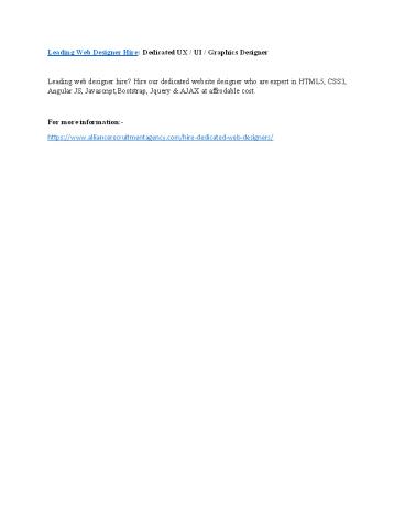 Leading Web Designer Hire: Dedicated UX / UI / Graphics Designer PowerPoint PPT Presentation