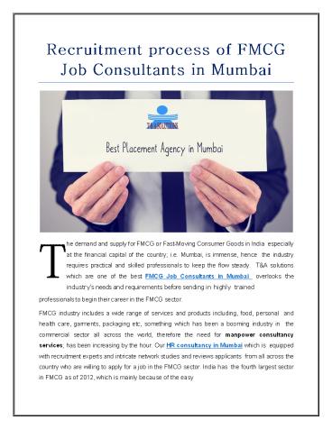 Title: Recruitment process of FMCG Job Consultants in Mumbai