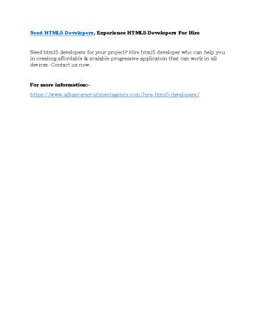 Need HTML5 Developers, Experience HTML5 Developers For Hire PowerPoint PPT Presentation