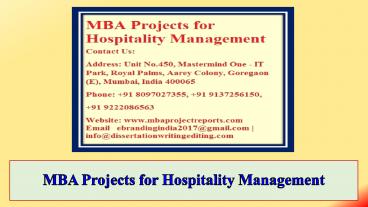 MBA Projects for Hospitality Management PowerPoint PPT Presentation