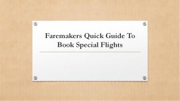 Faremakers Quick Guide To Book Special Flights PowerPoint PPT Presentation