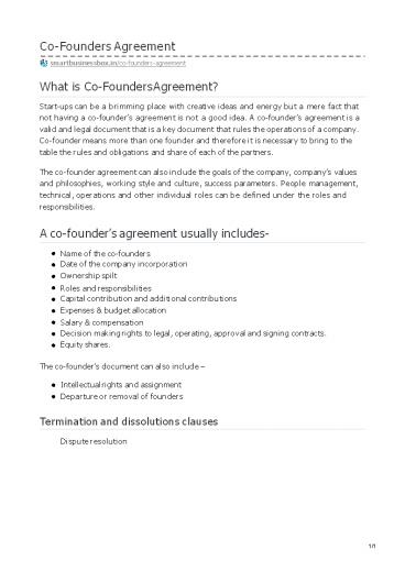 CoFounders Agreement - Smart Business Box PowerPoint PPT Presentation