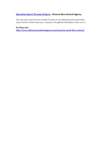 Executive Search Toronto Ontario - Alliance Recruitment Agency PowerPoint PPT Presentation