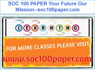 Title: SOC 100 PAPER Your Future Our Mission--soc100paper.com