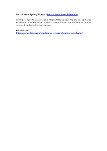 Recruitment Agency Alberta - Recruitment Firms Edmonton PowerPoint PPT Presentation