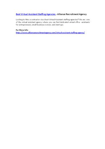 Best Virtual Assistant Staffing Agencies - Alliance Recruitment Agency PowerPoint PPT Presentation