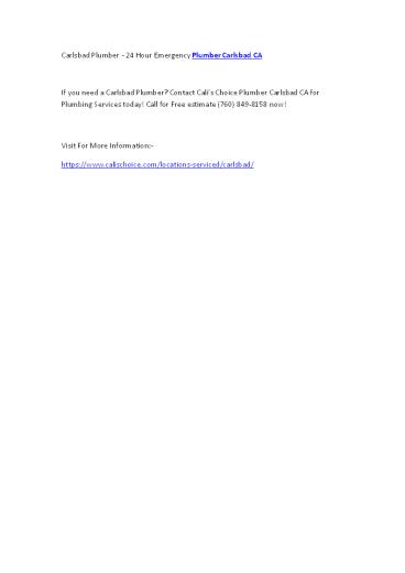Carlsbad Plumber - 24 Hour Emergency Plumber Carlsbad CA PowerPoint PPT Presentation