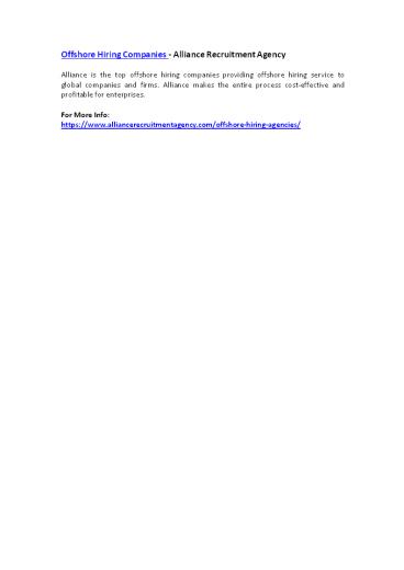 Offshore Hiring Companies - Alliance Recruitment Agency PowerPoint PPT Presentation