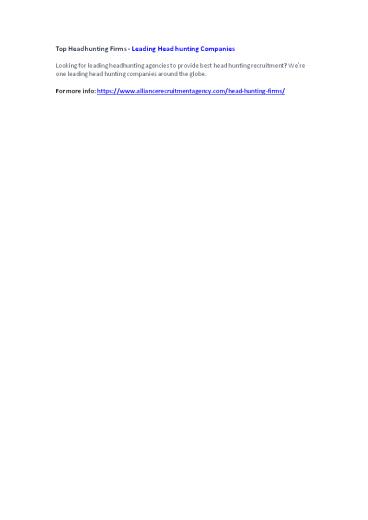 Top Headhunting Firms - Leading Head hunting Companies PowerPoint PPT Presentation