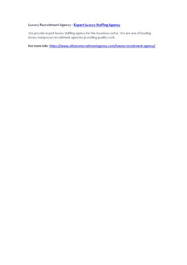Luxury Recruitment Agency - Expert Luxury Staffing Agency PowerPoint PPT Presentation
