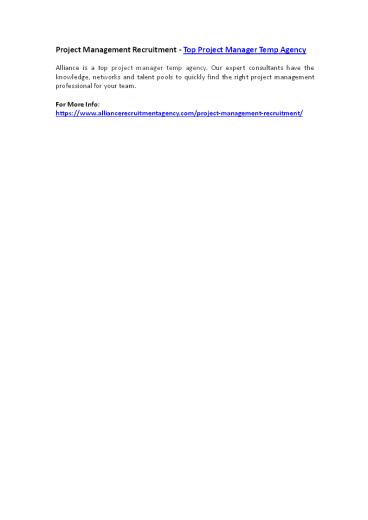Project Management Recruitment - Top Project Manager Temp Agency PowerPoint PPT Presentation