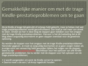 Kindle-prestatieproblemen hieronder gegeven. Je