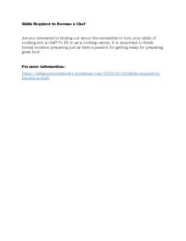 Skills Required to Become a Chef PowerPoint PPT Presentation