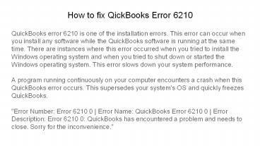 How to Fix Quickboks error 6210 PowerPoint PPT Presentation