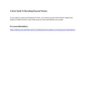 A Short Guide To Recruiting Personal Trainers PowerPoint PPT Presentation