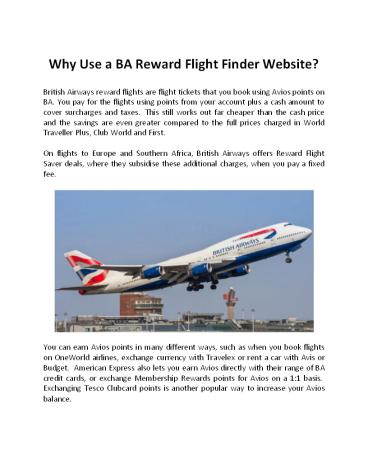 Title: Why Use a BA Reward Flight Finder Website