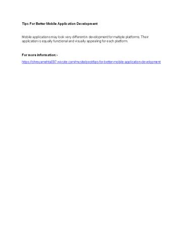 Tips For Better Mobile Application Development PowerPoint PPT Presentation