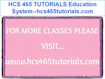 Title: HCS 465 TUTORIALS Education System--hcs465tutorials.com