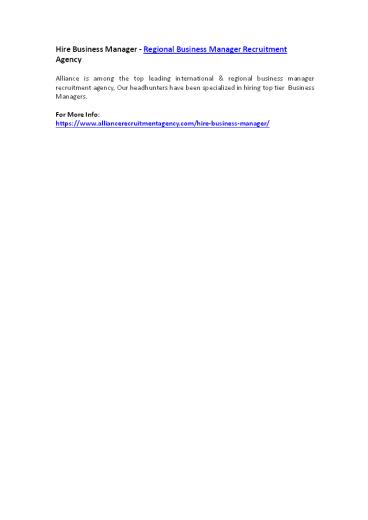 Hire Business Manager - Regional Business Manager Recruitment Agency PowerPoint PPT Presentation
