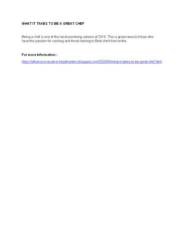 WHAT IT TAKES TO BE A GREAT CHEF PowerPoint PPT Presentation
