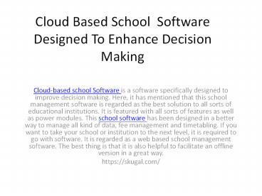 Cloud Based School Software Designed To Enhance Decision Making PowerPoint PPT Presentation