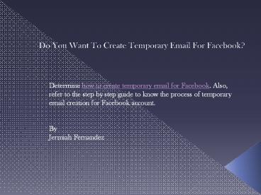 How To Create Temporary Email For Facebook? PowerPoint PPT Presentation