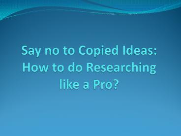 Say no to Copied Ideas How to do Researching