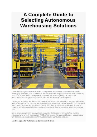 Title: Complete Guide to Selecting Autonomous Warehousing Solutions