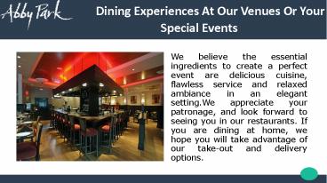 Dining Experiences At Our Venues Or Your