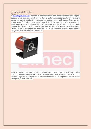 A Linear Magnetic Encoder is a sensor of mechanical movement that produces advanced signs A Linear Magnetic Encoder is a sensor of mechanical movement that produces advanced signs