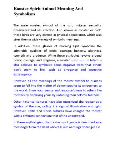 rooster Spirit Animal Meaning And Symbolism PowerPoint PPT Presentation