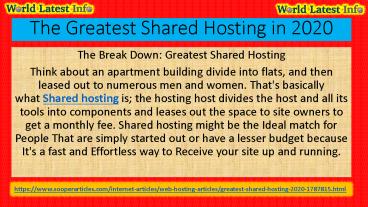 The Greatest Shared Hosting in 2020 PowerPoint PPT Presentation