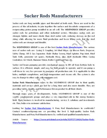 Title: Sucker Rods Manufacturers